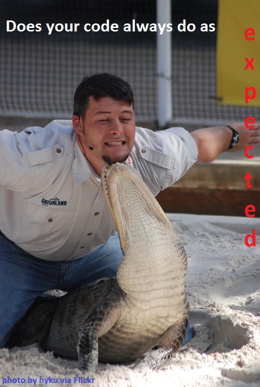 Does your code always do as expected? alligator gripping beard, photo by hyku via Flickr