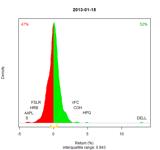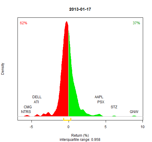 - Almost all of the S&P 500 stocks are used (as implied by Wikipedia on 2013 January 5 — see the R commands to scrape the data)
