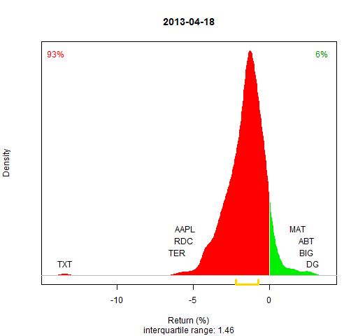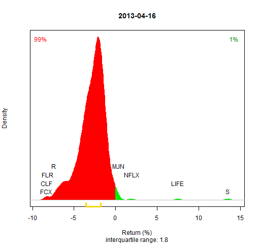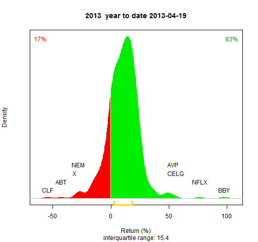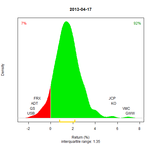 - Almost all of the S&P 500 stocks are used (as implied by Wikipedia on 2013 January 5 — see the R commands to scrape the data)