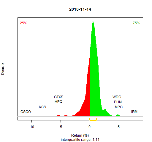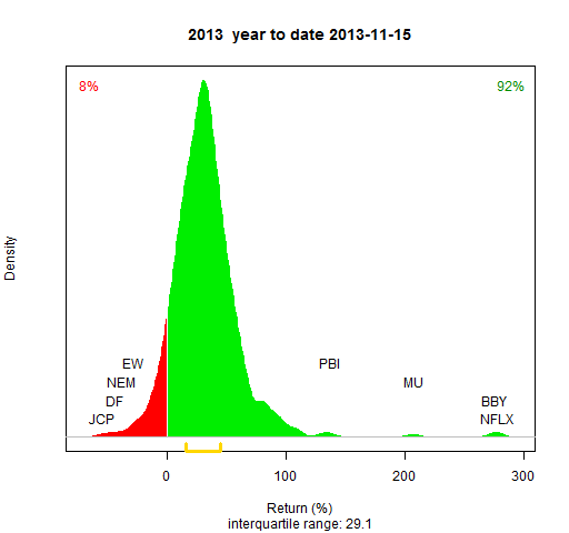 - Almost all of the S&P 500 stocks are used (as implied by Wikipedia on 2013 January 5 — see the R commands to scrape the data)