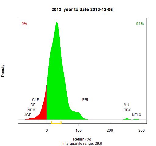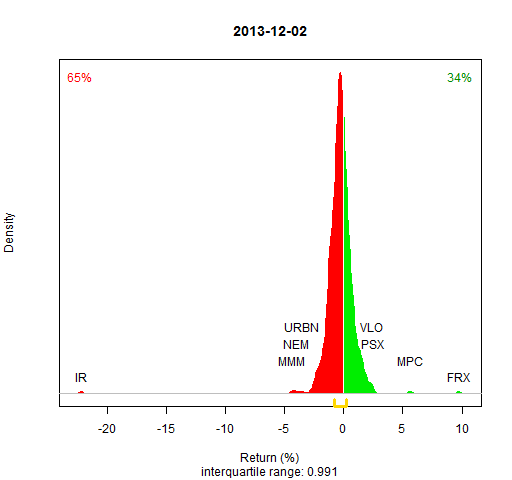- Almost all of the S&P 500 stocks are used (as implied by Wikipedia on 2013 January 5 — see the R commands to scrape the data)