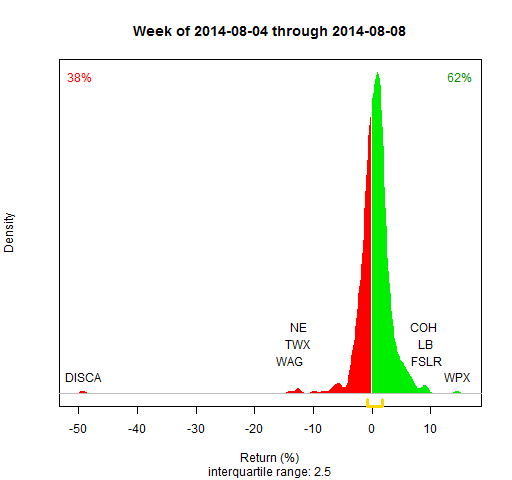 Due to technical problems, this didn’t go out on the weekend, and I’m not taking the time to check if the 50% drop for DISCA is a missed split or not.2014-08-08wk32ytdwk32